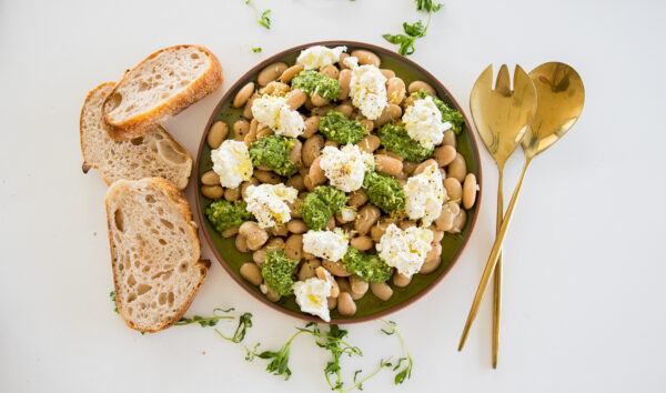 Spoon the beans onto a large serving platter and dollop over the ricotta cheese and pesto. Sprinkle over the lemon zest and juice. Finish with a decent amount of freshly cracked black pepper, salt and an extra drizzle of olive oil, if you fancy.