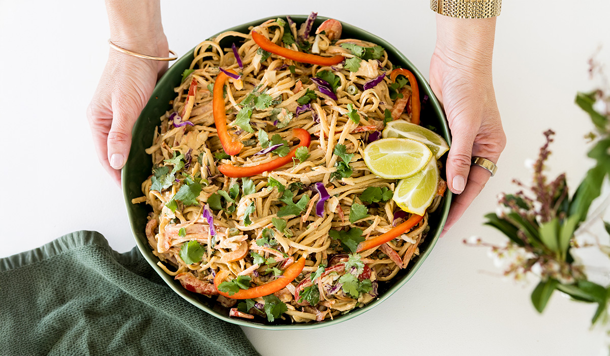 This is one of my go-to choices. Cool noodles. A creamy tahini dressing. Plenty of colour and crunch. And enough for leftover lunches the next day, which always feels like a small win. To keep the whole family happy, I usually serve it alongside grilled satay tofu or a good ol’ supermarket free-range pre-roasted chicken. The dressing is really where it all comes together. Creamy tahini balanced with lime, a touch of maple and just enough sambal to gently warm things up without overpowering the bowl. Fresh, vibrant and the sort of simple choice that keeps everyone fed… without draining the cook.